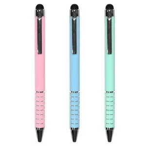 Balpen met touch, geschikt voor tablet of smartphone. Verkrijgbaar in 3 pastelkleuren: groen, lichtblauw en roze. Graag bij uw bestelling
