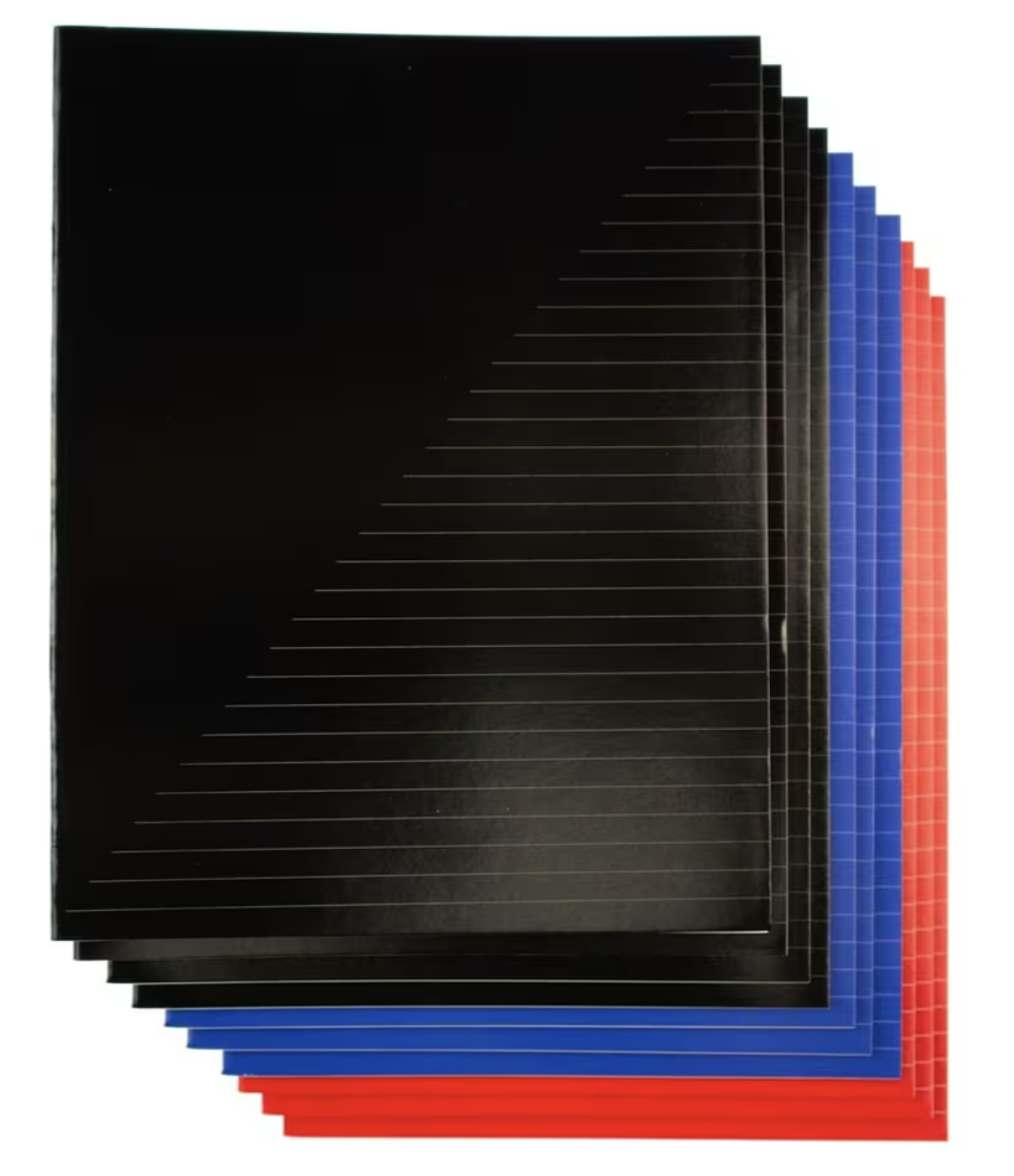 “Kangaro schrift uitgevoerd met glansomslag van 160 grams sulfaatkarton. Inhoud: houtvrij en chloorvrij gebleekt 60 grams papier. 80 bladzijden. lijntjes. Formaat schrift A5. Verpakt in assorti kleuren: rood, blauw en zwart.. Formaat 210x165mm. Krimp à 10 stuks.