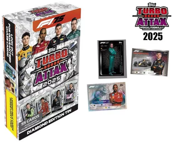 Verzamel met deze Formule 1 kaartcollectie van Topps jouw favoriete F1 Coureurs. Eén mega tin bevat: 66 kaarten, inclusief 6 limited edition, 5 gegarandeerded ‘100 years of Silverstone’ collecor cardds, F1 Legend Limited edition kaart en een legend relic card.